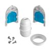 Den vattentäta lamphållaren är tillverkad i plast och passar för både ljuskällor och lampskärmar med E27-anslutning och kan köpas med eller utan täckkopp i silikon. Dessa täckkoppar finns i två olika varianter och i många olika färger.