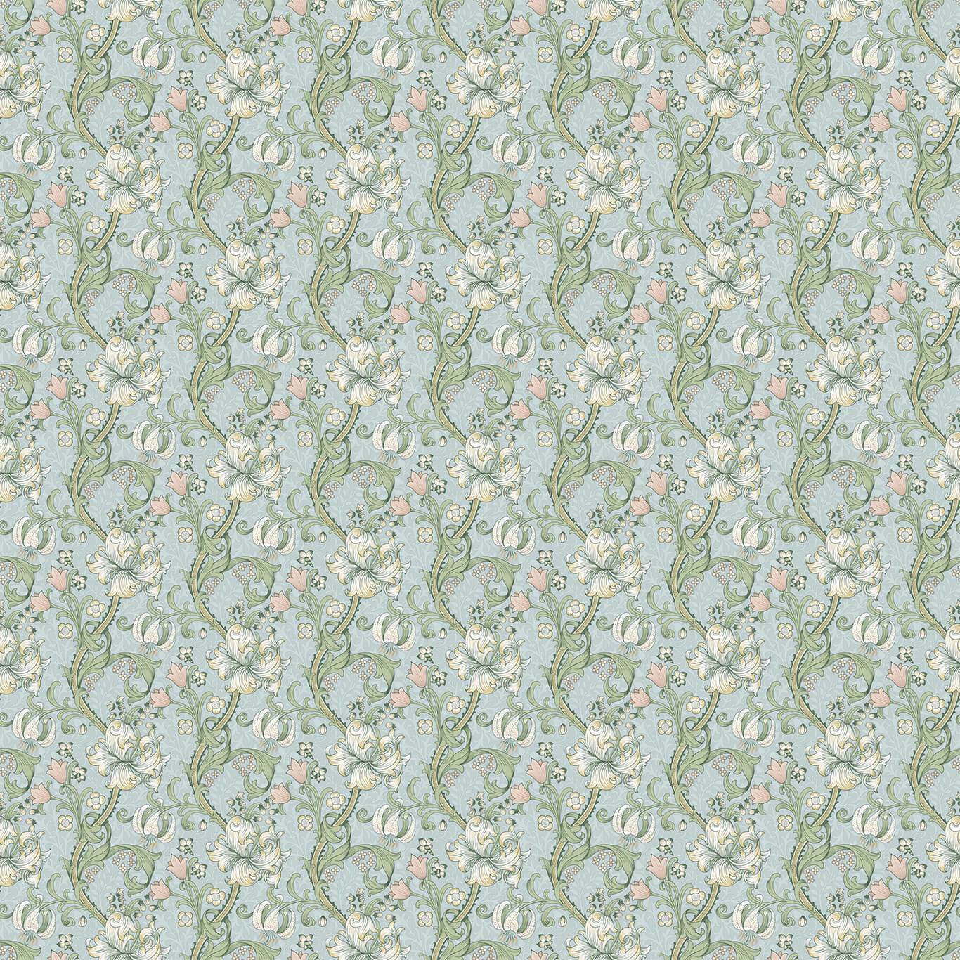 Golden Lily är en tidlös design från William Morris & Co som designades 1899 av J.H. Dearle. Här sammanflätas stora liljor med andra vackra blommor och blad i ett imponerande mönster.