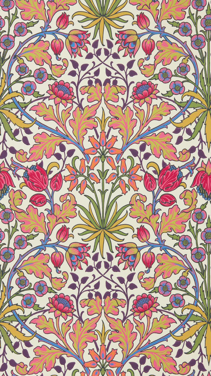 J.H. Dearles mönster från 1911 får en omisskännlig karnevalaktig färgändring. Krämröda och kosmiska rosa nyanser ramar in det nyfikna Hyacinth-mönstret, känt för sin överflöd av blomhuvuden som är sammanlänkade av böljande rankor.