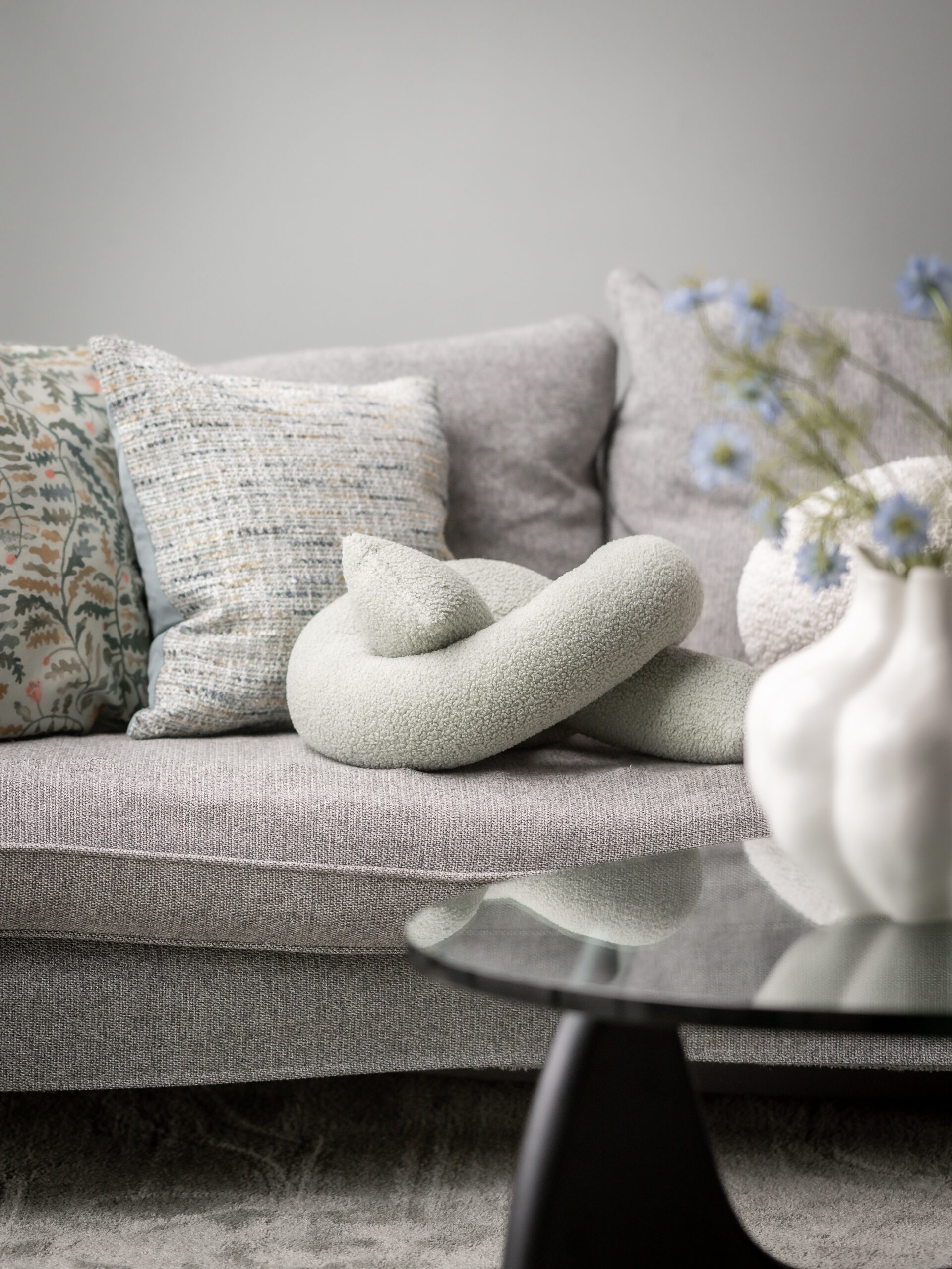 Knutformad kudde med mjukt fleecetyg. Storlek ca 45x30x20cm. En mångsidig kudde och en showstopper för din soffa.