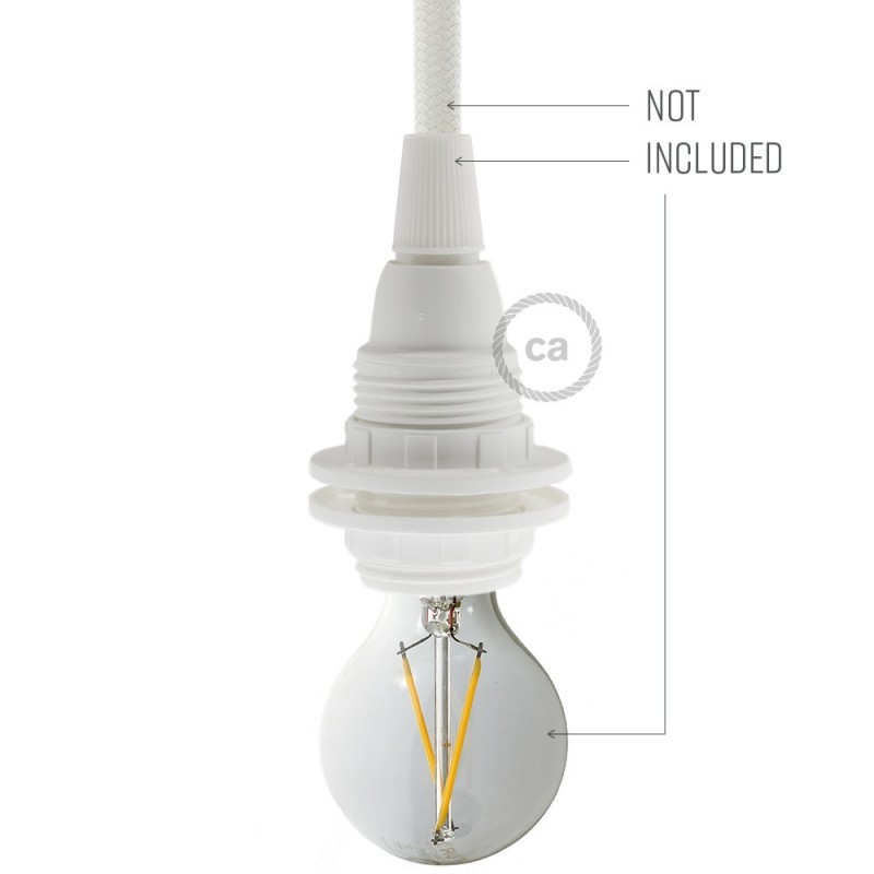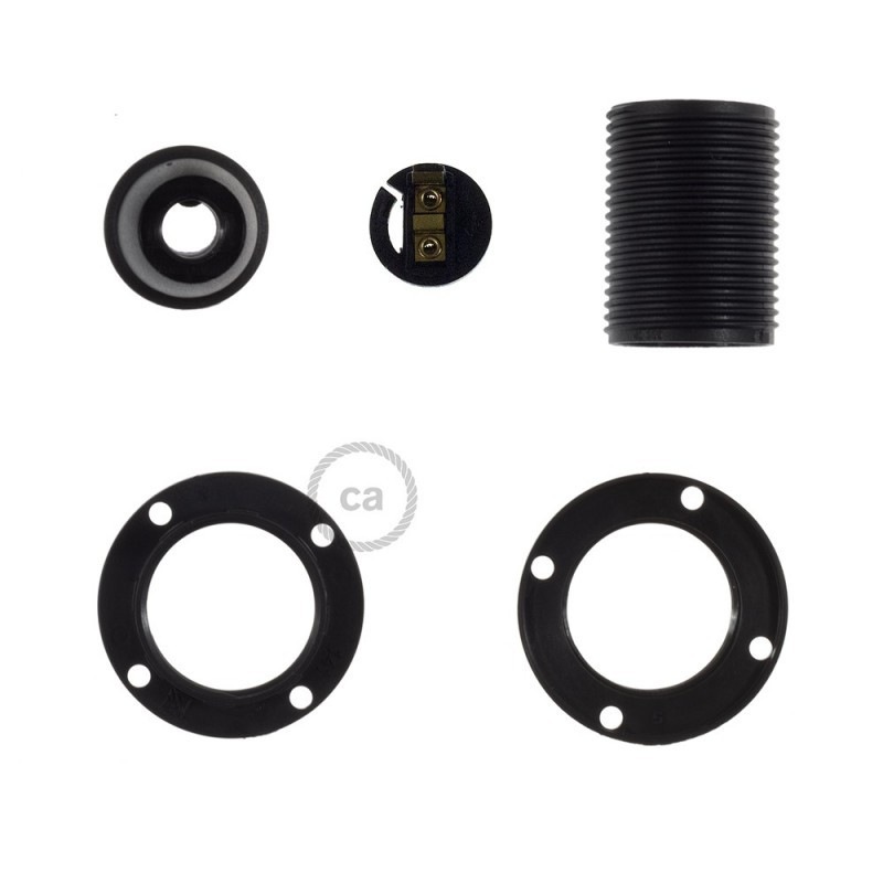 Den gängade E14 lamphållaren i svart thermoplast gör att du kan använda en lampskärm eller annat dekorativt element med en E14 passform. Höjden kan anpassas med hjälp av de två ringarna.