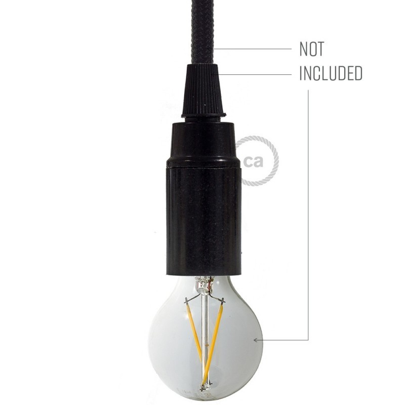 En slät lamphållare i bakelit för användning till E14 ljuskällor.
