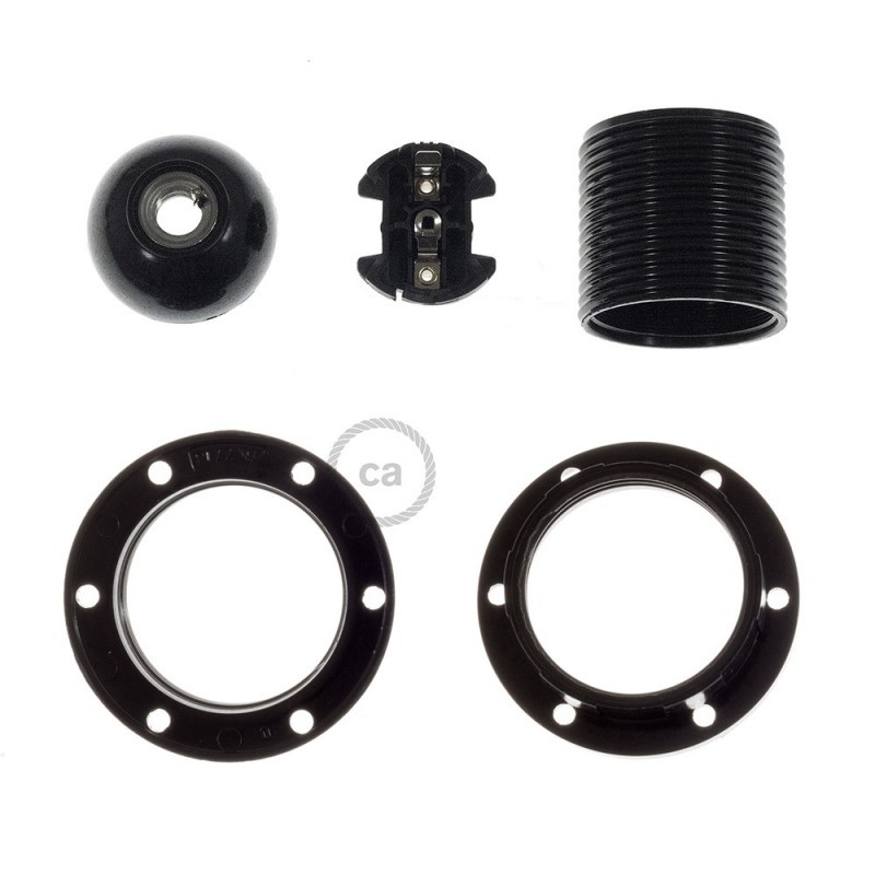 En slät lamphållare i bakelit för användning till E27 ljuskällor.