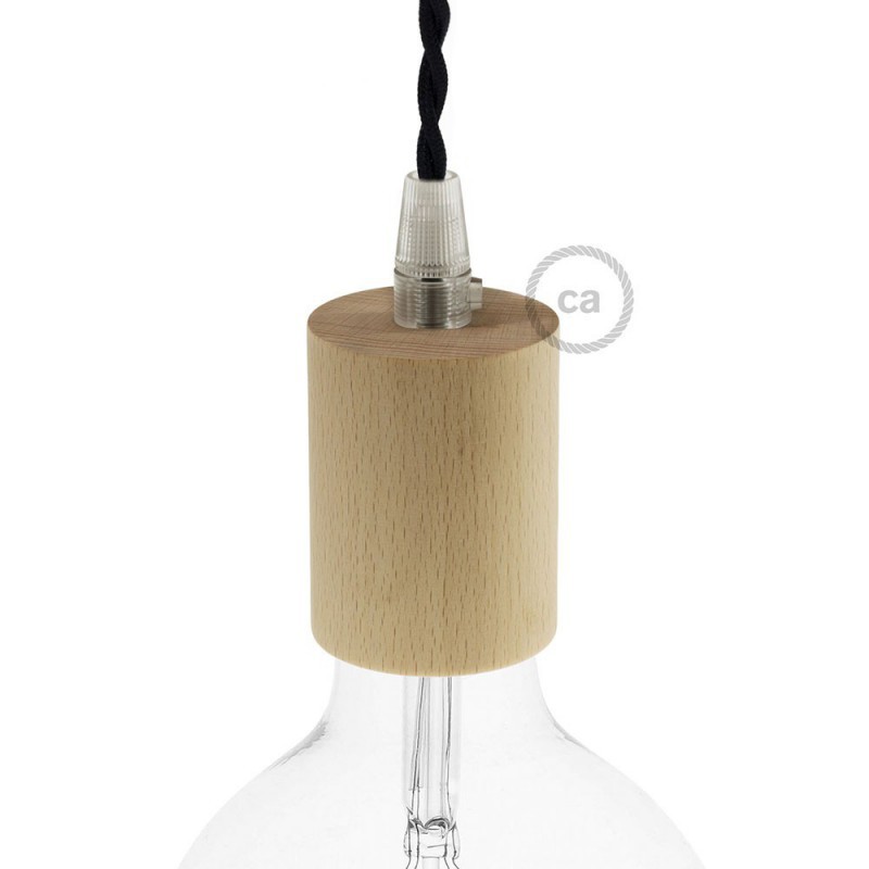 Lamphållare i obehandlat trä. Perfekt till våra vanliga runda och tvinnade textilkablar 2×0.75 (ojordad). Tillverkad i Italien.
