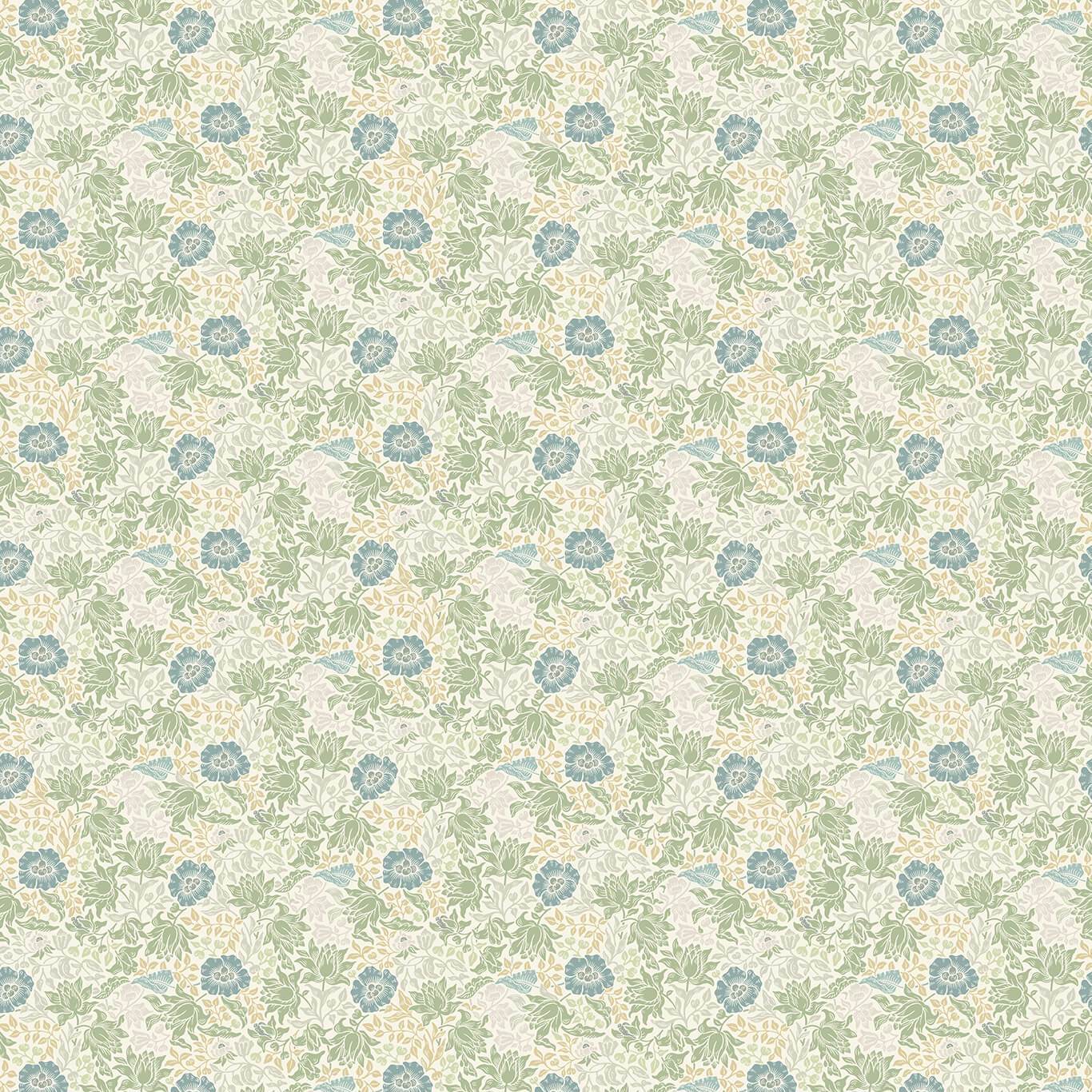 I denna finstämda design från William Morris möts små blad med den vackra Mallow-hibiskusen i ett fint mönster.