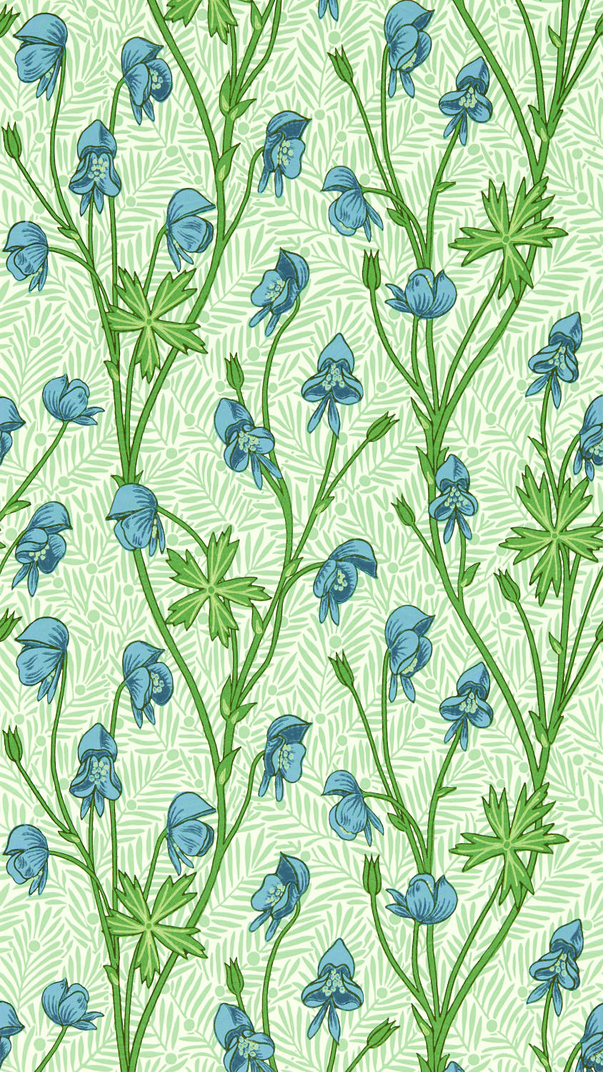 Se upp, Alan Francis Vigers upplyftande och glada design från 1901 har en något olycksbådande underton. Namngiven så eftersom dess blomhuvud liknar den rundade formen av en munkkappa, kallas denna växt också för wolfs bane, vilket påminner om dess användning som ett giftigt gift som användes för att täcka pilar som sköts mot härjande vargar under den klassiska tiden. Denna växt, lika förrädisk som vacker, är charmigt återgiven av Vigers med oskyldig oskuld.