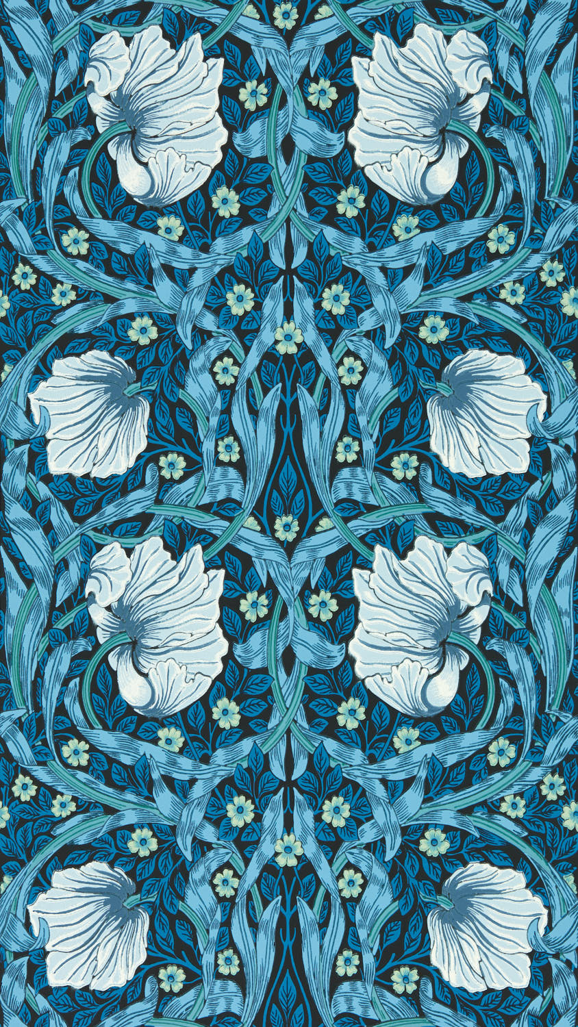 Psykedelika möter en signatur botanisk design från Morris & Co. som väcker uppmärksamhet för varumärkets tripphållna färgexperiment från de svängiga 60-talet. Fängslande och berusande, det virvlande rytmen och de dolda djupen i William Morris 1876 års Pimpernel har en oemotståndlig mytisk dragningskraft. Full av rankor och blomhuvuden är Pimpernel ett perfekt exempel på Morris’ lagerteknik, som tillför textur och dramatik vid varje vridning och vändning.