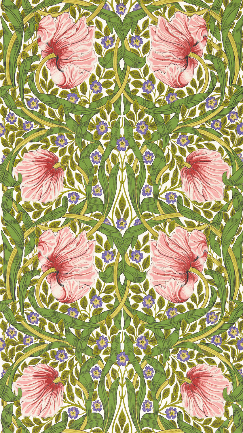 Psykedelika möter en signatur botanisk design från Morris & Co. som väcker uppmärksamhet för varumärkets tripphållna färgexperiment från de svängiga 60-talet. Fängslande och berusande, det virvlande rytmen och de dolda djupen i William Morris 1876 års Pimpernel har en oemotståndlig mytisk dragningskraft. Full av rankor och blomhuvuden är Pimpernel ett perfekt exempel på Morris’ lagerteknik, som tillför textur och dramatik vid varje vridning och vändning.