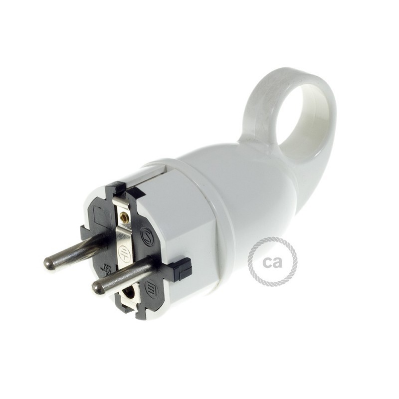 Schukokontakt med komfortring 16A 250V Vit kontakt med ring