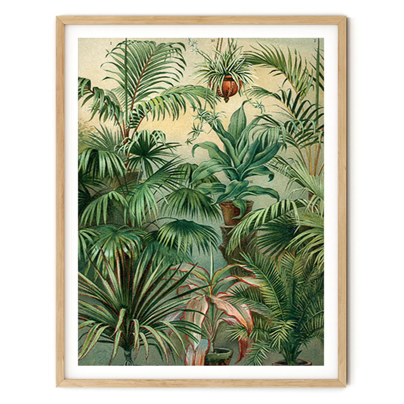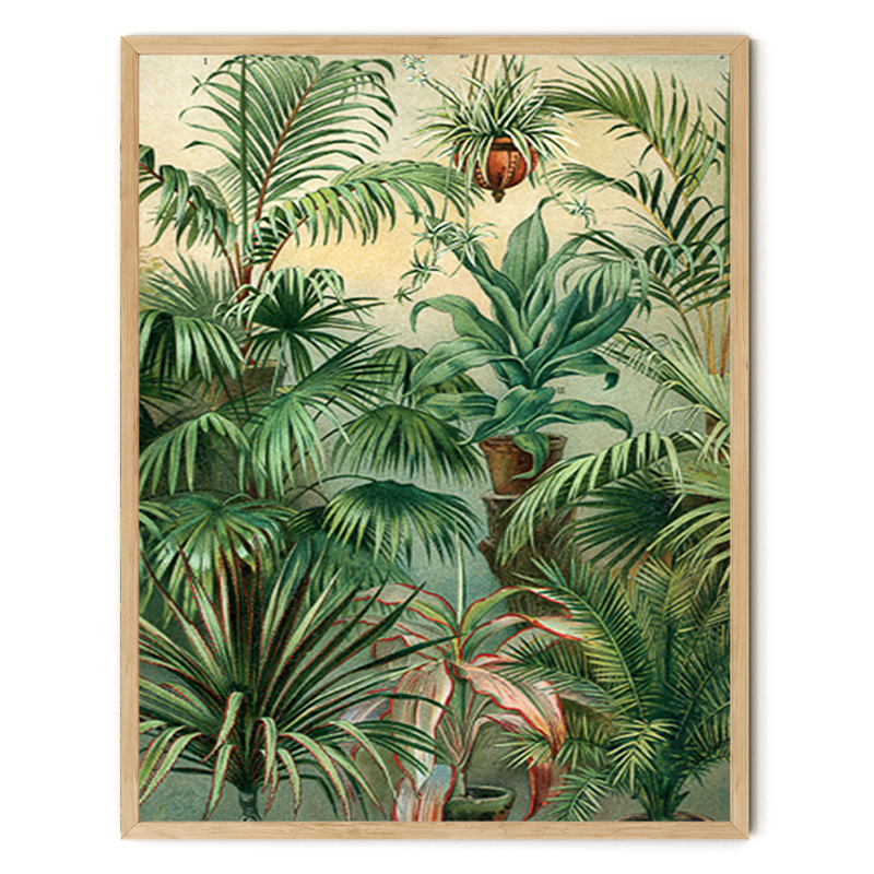 Vintage illustration av gröna växter i en frodig vinterträdgård.
