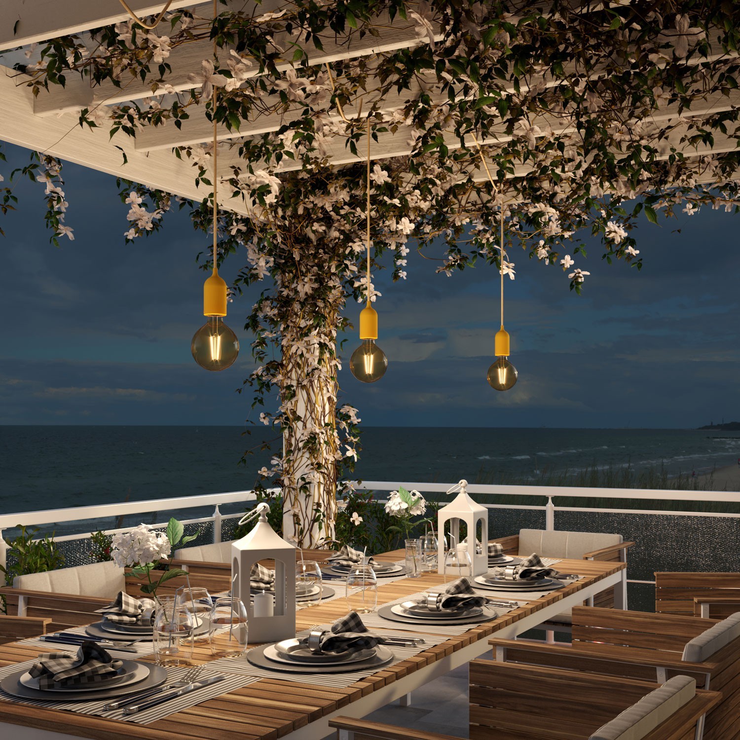 Hela sortimentet av UV-resistenta utomhuskablar är utformade för att användas med EIVA-belysningssystemet för utomhusbruk. Kombinera dina kablar med din favorittakkopp, en (eller lampskärm bland dessa tillgängliga på vår hemsida och det är klart: dina färgglada och skräddarsydda pendellampor är redo för att belysa dina utrymmen.